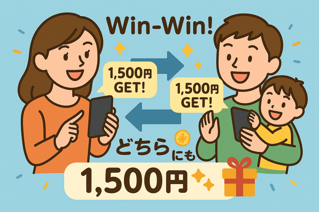 親権者の紹介コードを使って子どもの口座を作ると、親子でそれぞれ1,500円ゲットできちゃいます♪