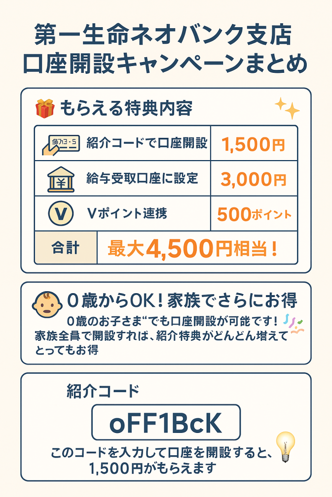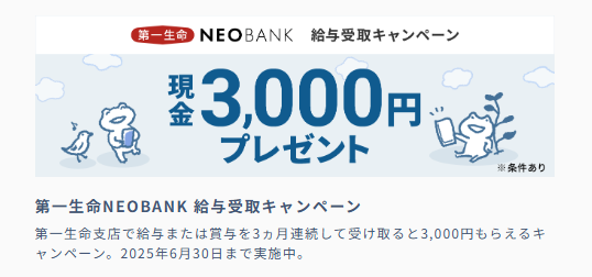 【第一生命NEOBANK】お友達紹介キャンペーンが超お得!!口座開設でもれなく最大2,000円分もらえるチャンス♪